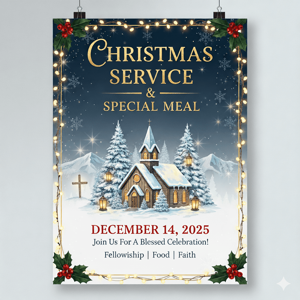 Christmas Service & Special Meal December 14, 2025 Join Us For A Blessed Celebration! Fellowship | Food | Faith